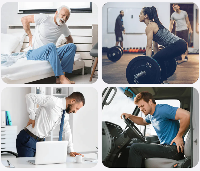 Daily life shouldn't be interrupted by back discomfort. From home to the office, our multifunctional device provides targeted relief anytime, anywhere — helping you stay active and manage these problems